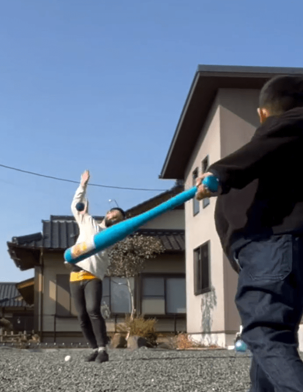 • バッテイング練習中の10歳息子。しかしよく見ると…「情報量が多すぎる笑」「全部笑ってしまう」
