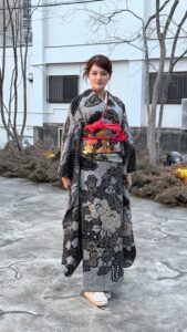 落ち着いた黒の総絞りに金が映える振袖は「明るい色でなくても、こんなに華やかで素敵なんだ」と感じるほど印象的なものだったそう。お母さんやおばあちゃんが長年大切にしてきた理由も、自然と理解できたような気持ちになったと話します。