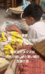 • 生まれたての弟をあやす11歳兄。しかし1年後、現在の様子に「仲良く元気に育って」「筋トレだなあ笑」