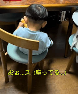 ソファでおにぎりを食べる1歳息子 しかしよく見ると…母「!?」すべてを察した母の投稿に「可愛いから許す!」「現行犯〜」