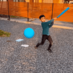 • バッテイング練習中の10歳息子。しかしよく見ると…「情報量が多すぎる笑」「全部笑ってしまう」