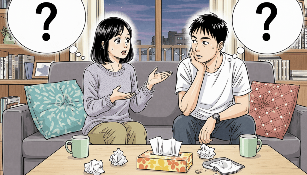 • 妻「鼻かんだんだよね」夫「え!?」→夫が驚いたワケに「笑ってしまった」「すれ違い」