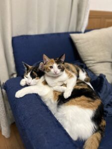 そんな経緯で保護されたわかめちゃんは、新しい家族に迎えてもらってから5ヶ月ほどが経ちました。現在は、先住猫の3匹に甘えたり、一緒に遊んだりと穏やかな毎日を送っているようです。
