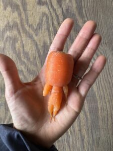 ある日、1本の人参を見て「なんだこれ…?」と一瞬手が止まります。そこには、頭や胴体、手足までそろい、小さな人間を思わせる人参があったのです。