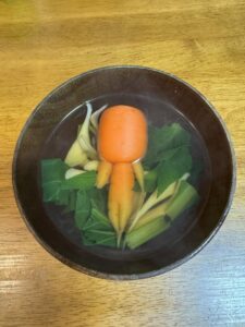 お吸い物に入れられた人参(@oikawa.farmさんより提供)
