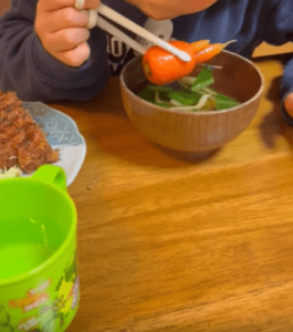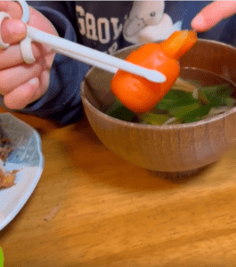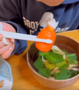 追加投稿された動画では、汁物に入れた人参を“足”のほうから食べている様子が映っていました。