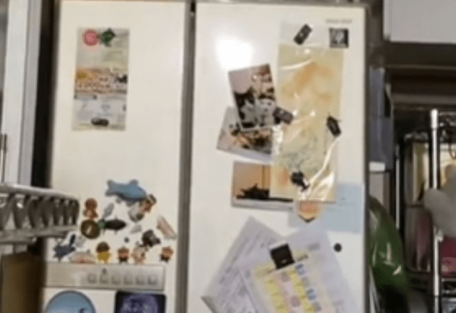 • 自宅の台所に向かうと…冷蔵庫に違和感。よく見ると、違和感の正体に「降臨した…」「オーラを感じる」「いや絶対、神様」