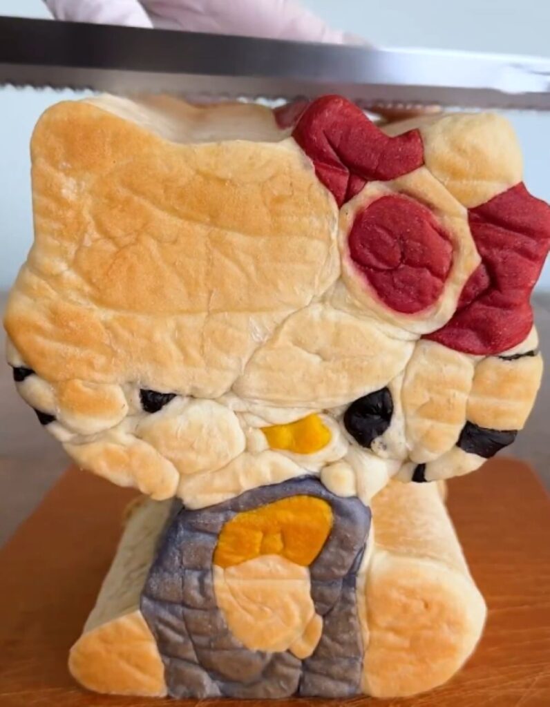 • キティちゃんの食パンづくりに挑戦した女性。しかし…完成品のまさかの姿に「ギャル化したww」「これはこれで可愛い♡」