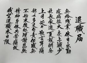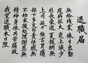 また、当時X(旧Twitter)で話題になった「退職届の写経」も、その流れでお願いしたそうです。