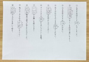 問題文には「今、□□(しゅくだい)やろうと思ってたのに!」「授業中は手紙を回すことに□□(ひっし)」など、“小学生あるある”を取り入れました。
