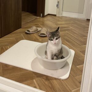 それに気づき、投稿者さんが洗面器を差し出すと、モクちゃんはそのまま飛び乗り、洗面器に入ったのです。洗面器の中の暖かさが気に入ったのか、それ以降、そこで眠るようになりました。