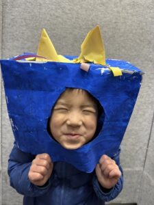 作ったお面を持ち帰る日、息子さんは帰り道で「みてみて!」とお面をかぶって披露します。その姿を見たママさんが笑うと、息子さんも嬉しくなったようです。