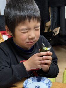 願い事をしながら食べる様子(@haruka49_さんより提供)