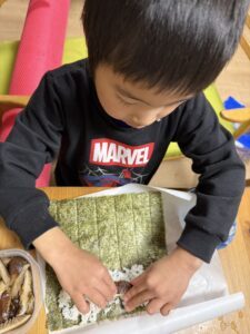 恵方巻き作り(@haruka49_さんより提供)