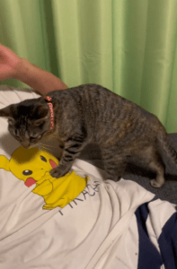今回話題となったのは、女の子の猫・わさびちゃんです。撮影されたのは、家族で束の間の休憩時間を過ごしていたときでした。