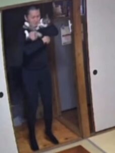 @gesshokutohirumaさんは、ペットカメラで猫ちゃんたちの様子を確認するのが日課だといいます。ある日、いつものように映像をチェックしていると、画面に映った旦那さんの姿が…。