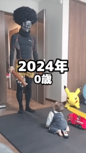 動画は、2024年の「0歳の節分」から始まります。そこには、赤鬼の衣装を身にまとったパパ鬼が登場しますが、息子さんは何が起きているのかわからずポカンとした表情。