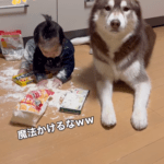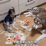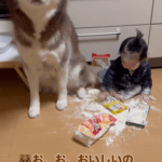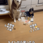 • トイレから戻ると…台所に違和感を覚えた母。直後、よく見ると…「すんごい困った顔」「これはあかん、、爆笑」