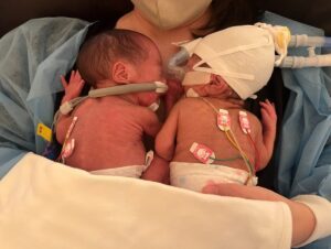 その羊水がほぼゼロと告げられたKさん(@keroppi__keroppi)の双子は、お腹の中で命をつなぎ、無事に誕生しました。