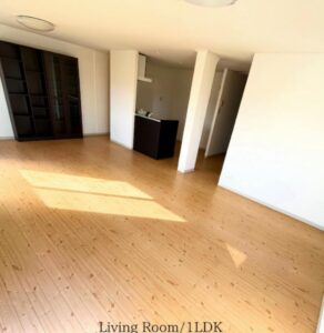 ママさんたちが暮らしているのは、約18畳の1LDKの物件。中学生になる息子さんの部屋として8.5畳の個室もあり、もともとはリビングにママさんのベッドを置く前提で入居していました。