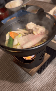 今回の食事で印象に残ったものとして、鍋をあげてくれた彼女さん。固形燃料の匂いや、火の揺らぎなどがあったことで、五感で楽しむことができたのだとか。