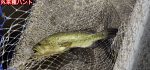今回網で捕獲した魚は、ブラックバスが2匹、ダントウボウが3匹でした。