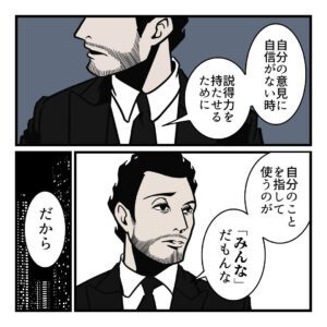 多数派を前提にした言い方は、一見もっともらしく聞こえます。しかしその実体は、具体性のない、あいまいな主語です。