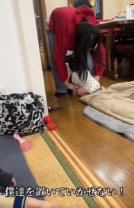 楽しく過ごしていた中で、お姉ちゃんが出かける準備をするために立ち上がった瞬間、状況が一変します。