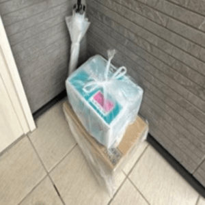 玄関先に置かれた荷物の写真を確認すると、なんと、ビニール袋に包まれているではありませんか。