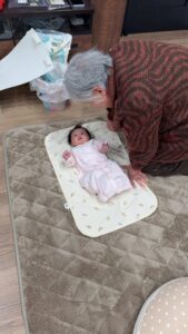 お母さんは毎日一緒に赤ちゃんのお風呂を手伝い、おばあちゃんは日中、赤ちゃんとちゅらみちゃんの様子を見守ってくれました。