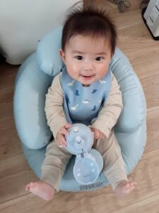 普段の様子を聞いてみると「いつもご機嫌で、よく寝て、しっかり食べる親孝行な子です」と教えてくれました。