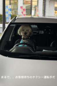 話題となっていたのは、運転席に座って前を見つめるチユくんの姿。先にチユくんを乗せて「車で待っててね」と伝えたところ、まるで人間の運転手のような佇まいでいるところを目撃したといいます。