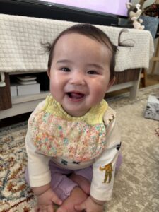 普段の娘さんは、表情豊かにさまざまな顔を見せてくれるとのこと。普段は下がり眉の娘さんですが、ときどき強い意志を感じさせるようなキリっとした上がり眉になることもあり「おもしろいです」とママさん。