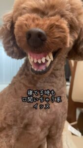 えるもくんは普段から歯茎を出しているとのことですが、寝ているときでも歯をしっかり見せているようです。