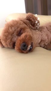 今回話題となったのは、@elmo_dayさんの愛犬、トイプードルのえるもくんの寝ている動画。