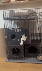 ある日のこと。飼い主さんの旦那さんが、ミシェルちゃんがケージ内の箱の中から片方の前足をまっすぐ前に出しているのを発見しました。「かわいい!」と思って動画を撮り始めた飼い主さん。