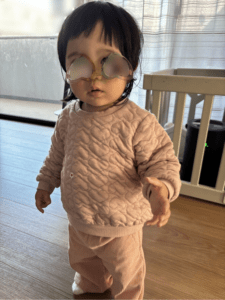 普段の様子についてママさんに聞くと、気がつくとサングラスをかけていたり、部屋をおもちゃで散らかしたり…とにかく元気な娘さんなのだそう。