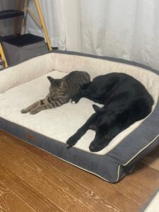 飼い主さん(@shizurdpcsf)が、愛犬と愛猫の微笑ましい様子をTikTokに投稿。
