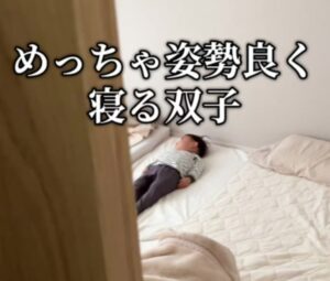 姿勢良く寝る双子のお子さんたち①(@fukutoku_channelさんより提供)