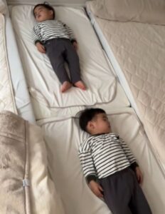 2歳の双子のパパ。眠っている様子を見に行った結果…「シンプルになんでだよ(笑)」「声出たわ(笑)」「川の字ガチ勢」