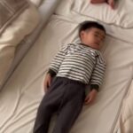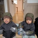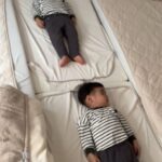 姿勢良く寝る双子のお子さんたち①(@fukutoku_channelさんより提供)