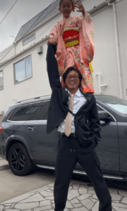今回の撮影では、着物姿での挑戦となりましたが、私服のときは、よりスムーズだったとのこと。そんな中でも成功した肩車は、これまでの積み重ねがあったからこそ実現できた動きでもありました。