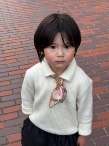 5歳になる息子さんがいるママさん。息子さんが初めてスカーフを着用したので、記念に写真を撮りました。