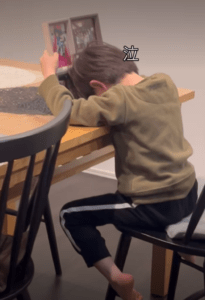 「ねぇねに会いたいなぁ」と言いながら、写真に写るお姉さんをなでる弟さん。すると感極まったのか、テーブルに顔を突っ伏して泣いてしまいました。
