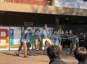 動画には、新歓イベントでの出会い、息の合ったダブルダッチのパフォーマンス、並んでにっこりとピースサインを見せる姿、華やかなドレスとタキシード姿など、いつも一緒にいる2人の姿が収められています。