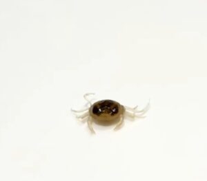 アサリを剥き始めて30分ほど経った頃のこと。中から出てきたのは、小さなカニでした。