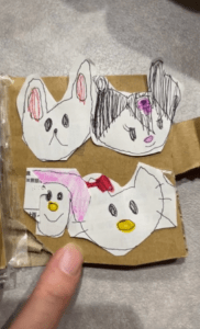 娘さんは、家庭では自分の意見をしっかり持っている一方で、外では控えめな一面もあり、シール交換でも遠慮することがあるそうです。その一方で、日頃からものづくりが好きで、見たものを真似して作ることも多いと教えてくれました。
