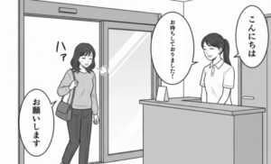 待合スペースでは、施術を終えた人や順番を待っている人の視線を感じる場面があったといいます。