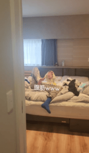 さらに、動画をよく見ると、パパさんは片方しか靴下を履いていません。パパさんもママさんと同様に身支度中だったのでした。