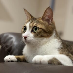 1匹のキジシロの子猫にひと目ぼれしたことから、家族としてお迎えすることに。